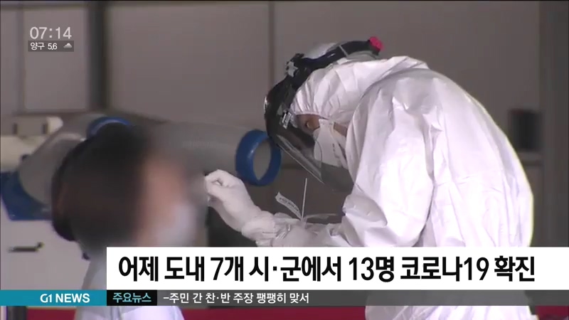 도내에서 연일 산발적인 코로나19 감염이 이어지고 있는 가운데, 어제는 7개 시·군에서 13명이 양성 판정을 받았습니다.