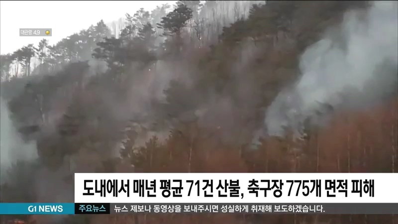 해마다 도내에서 발생하는 산불로 축구장 775개가 넘는 산림이 피해를 입는 것으로 나타났습니다.