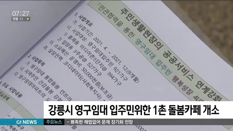 강릉시 영구임대 입주민 위한 1촌 돌봄카페 개소