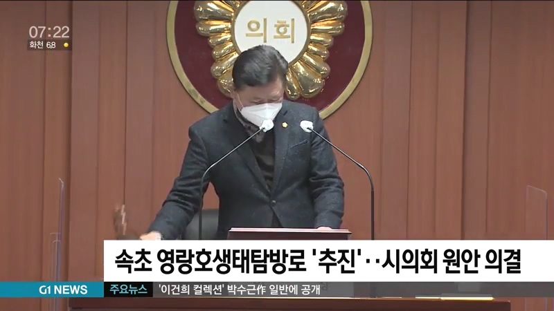 속초시의회는 어제(6일) 306회 임시회 1차 본회의에서 영랑호 생태탐방로 조성사업 공유재산관리계획안을 원안 의결했습니다.