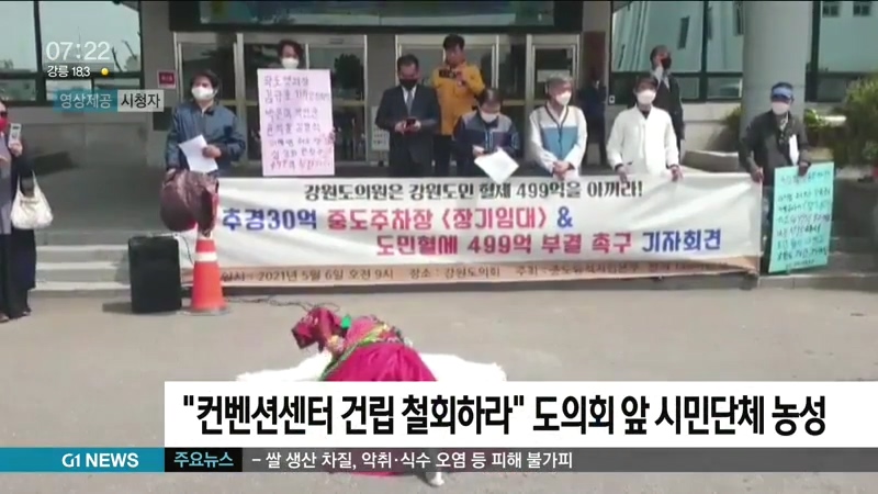 "컨벤션센터 건립 철회하라" 도의회 앞 시민단체 농성