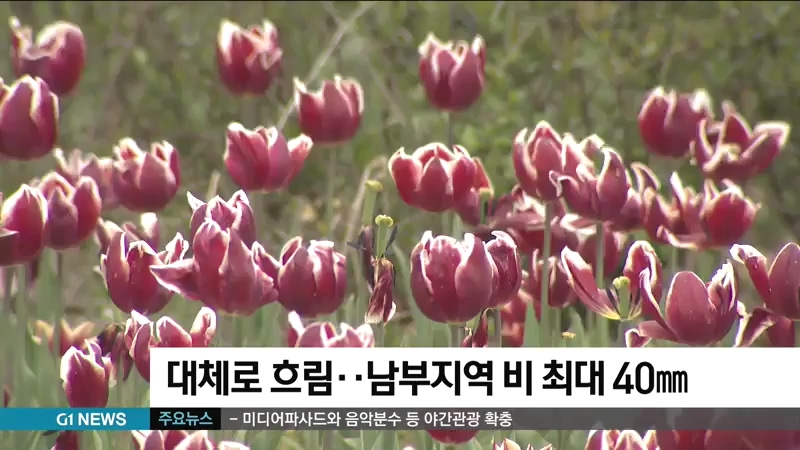 내리는 비는 20~40mm로 예상되며, 낮 최고기온은 16도~23도로 어제와 비슷하겠습니다.