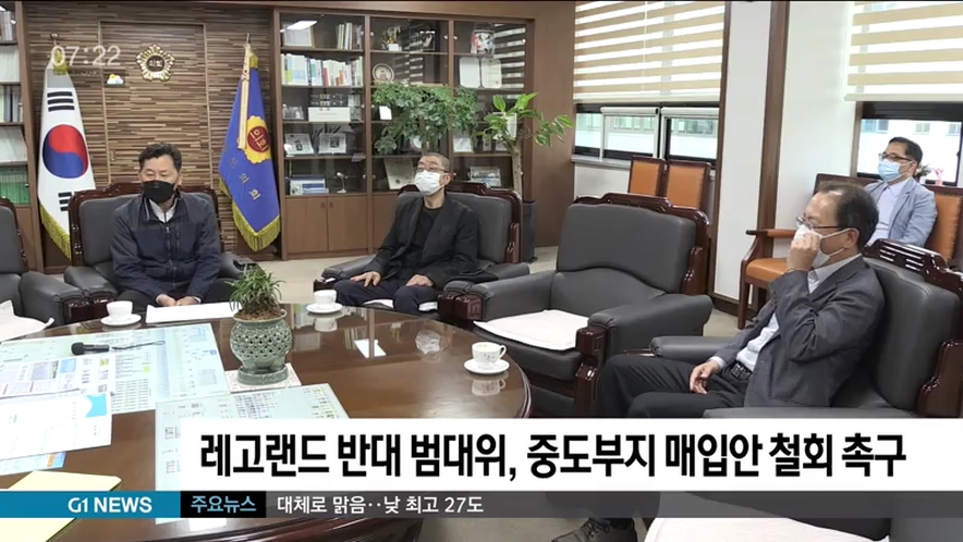 레고랜드 건설사업 중단을 촉구하는 시민사회단체로 구성된 범시민대책위원회는 어제(11) 곽도영 강원도의회 의장과 만나 이번 회기에 상정돼 있는 중도 부지 매입안 부결을 촉구했습니다.
