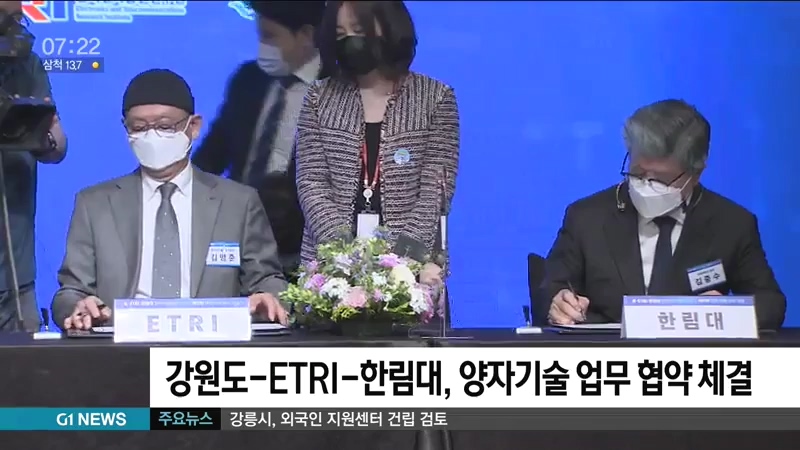 강원도와 한국전자통신연구원, 한림대학교는 업무 협약을 체결하고, 다음달 강원양자기술연구소를 한림대 내에 개설하기로 합의했습니다.
