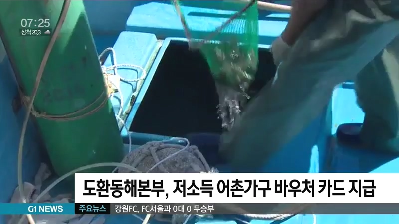 강원도 환동해본부가 저소득 어촌가구의 경영 안정을 지원하기 위해 내일(25일)부터 이달 말까지 바우처 카드를 지급합니다.