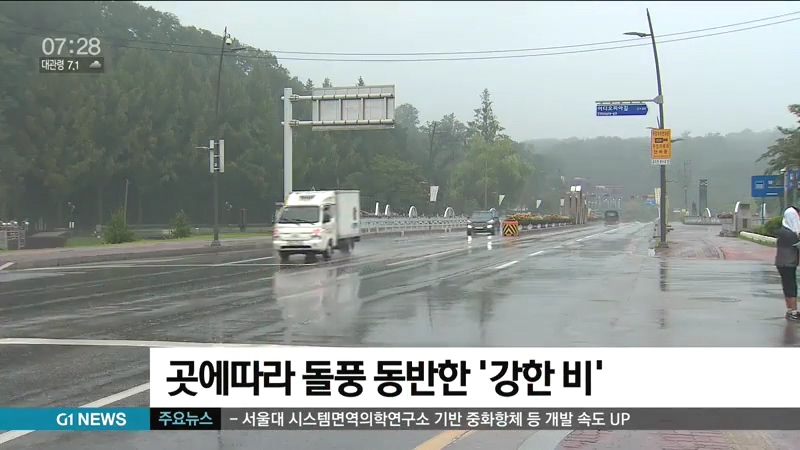 비의 양은 5에서 30mm 정도로 예상되지만, 곳에따라 돌풍과 천둥,번개를 동반한 강한 비가 내리 곳도 있겠습니다.