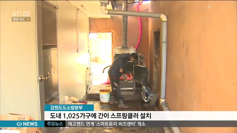 강원도소방본부가 도내에서 화목보일러를 사용하는 천 25가구를 선정해, 지난달부터 두 달간 간이 스프링클러를 설치했다고 밝혔습니다.