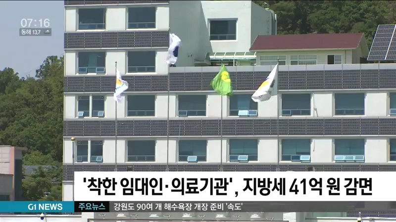 이를 위해 강원도의회와 각 시·군의회에 '코로나19 피해 지원을 위한 도세 감면안'을 상정해 안건이 통과되면, 주민세와 재산세 등 약 41억 천900만 원의 감면 혜택이 주어질 것으로 예상됩니다.
