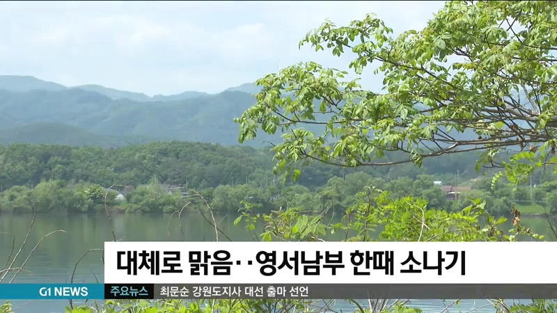강원도는 오늘 대체로 맑겠으나, 영서남부지역을 중심으로 오후 한때 소나기가 내리겠습니다.