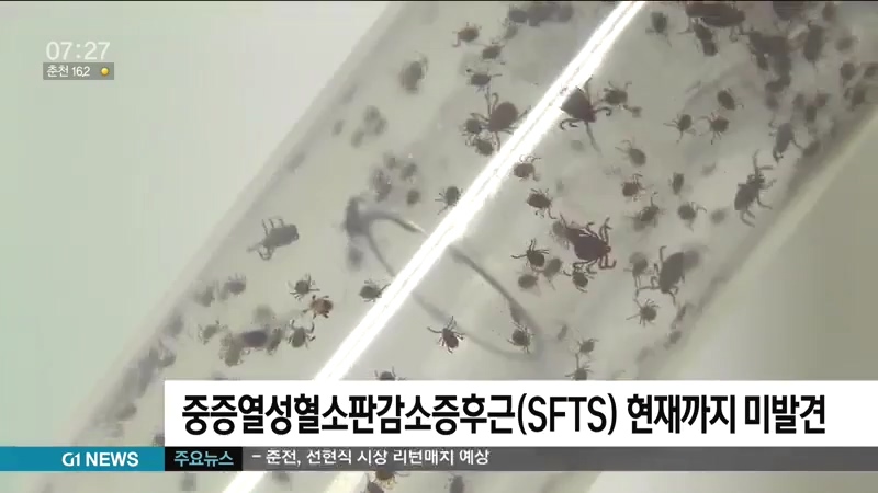 강원도보건환경연구원은 도내 5개 시·군 30개 지점에서 참진드기 2,252마리를 잡아 병원체 감염률을 조사한 결과, SFTS 중증열성혈소판감소증후군 바이러스는 검출되지 않았다고 밝혔습니다.