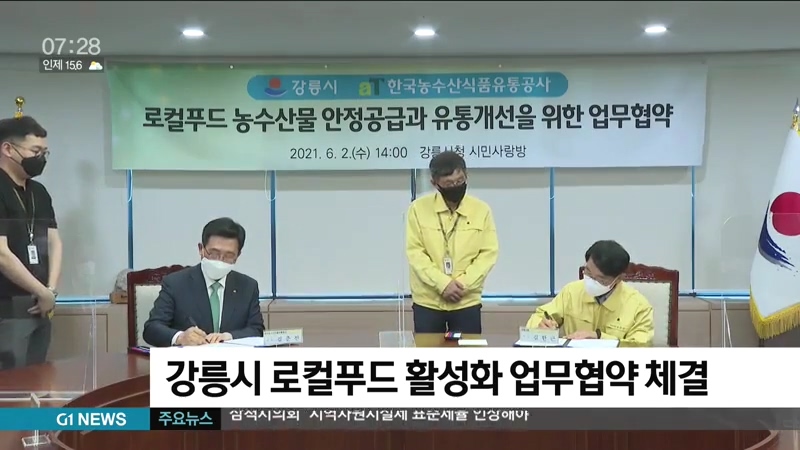 강릉시는 한국농수산식품유통공사와 로컬푸드 농수산물의 안정적인 공급기반을 조성하고, 유통구조를 개선하기 위해 업무협약을 체결했습니다.