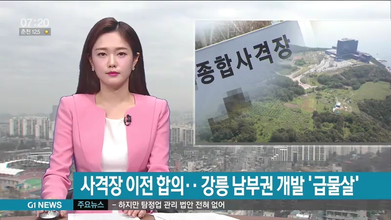 "지난달 강릉시가 3년만에 국방부와 사격장 이전 합의각서 체결에 성공하면서, 강릉 남부권 관광단지 조성이 새국면을 맞게 됐습니다."