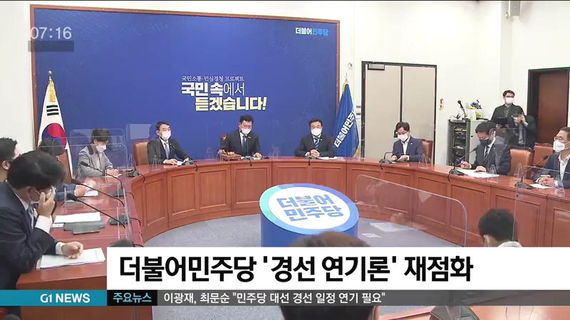 이광재 의원과 최문순 도지사가 대선 출마를 공식화한 가운데 여당의 대권 주자 경선 연기론이 고개를 들고 있습니다.