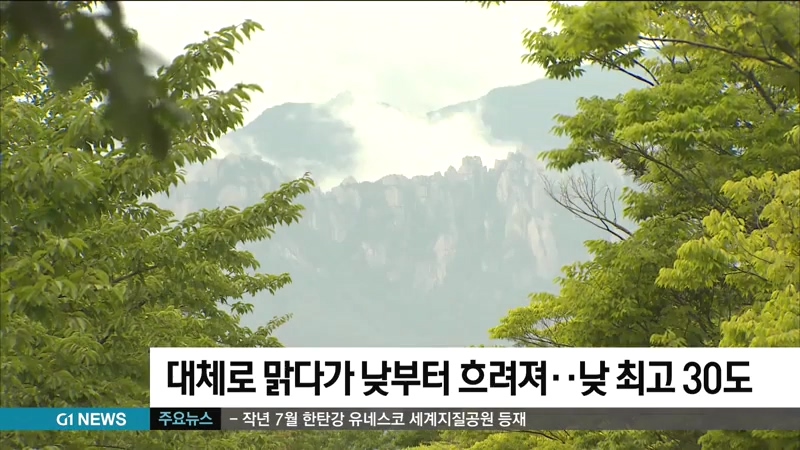 대체로 맑다가 낮부터 흐려져..낮 최고 30도
