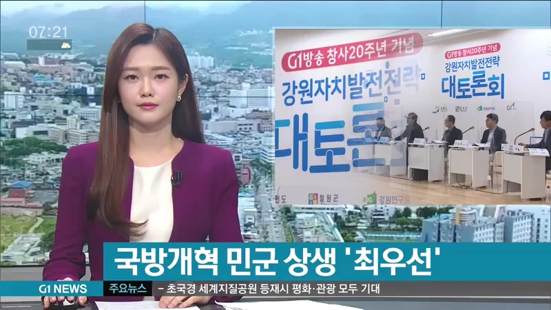G1 방송은 창사 20주년을 맞아 강원도 18개 시군의 현안과 발전 방안을 논의하는 '자치발전 전략 대토론회'를 열고 있습니다.