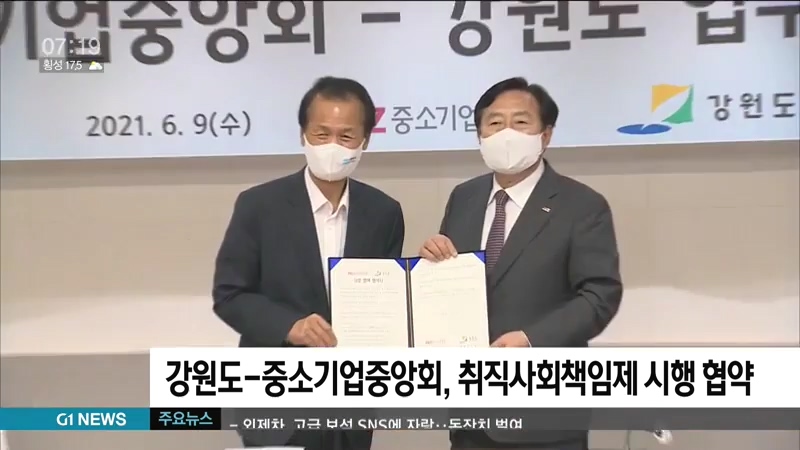 강원도가 전국 최초로 도입한 '취직사회책임제'를 확대하기 위해 중소기업 중앙회와 업무 협약을 맺었습니다.