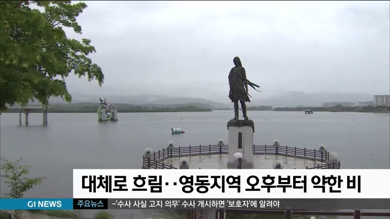 오늘 강원도는 대체로 흐린 가운데 영동지역에는 오후부터 비가 내리겠습니다.