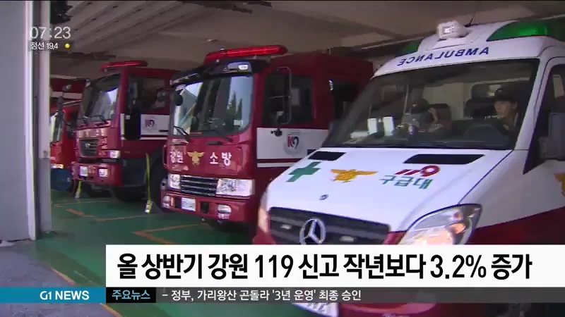 올 상반기 강원도내 119 신고가 작년보다 소폭 증가하고, 화재·구조·구급 출동도 전반적으로 늘어난 것으로 나타났습니다.