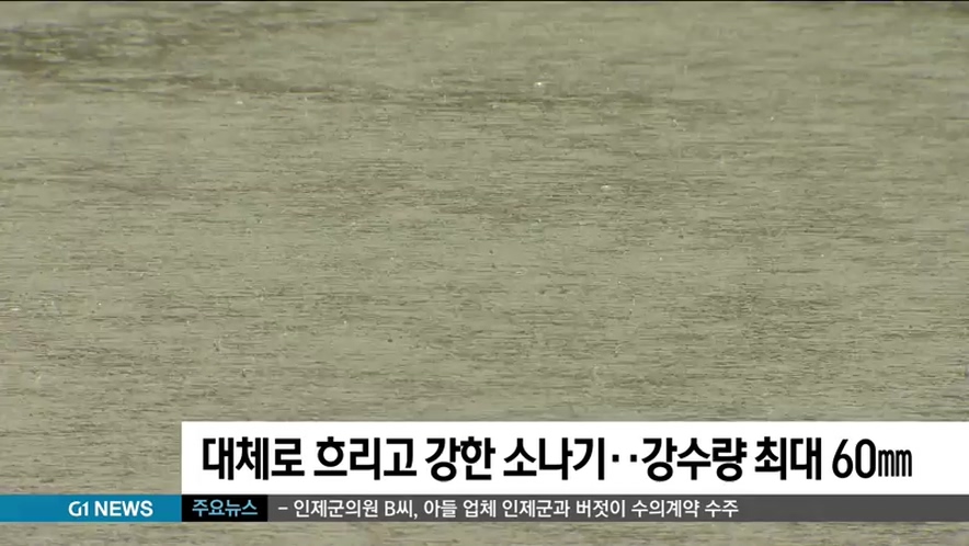 대체로 흐리고 강한 소나기..강수량 최대 60mm