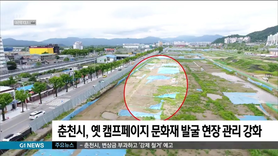 춘천시는 G1보도 이후 실시된 문화재청의 현장 점검 결과에 따라, 문화재 발굴 현장 내 유적을 보존하고 안전사고를 예방하기 위해 옛 캠프페이지 출입을 통제한다고 밝혔습니다.