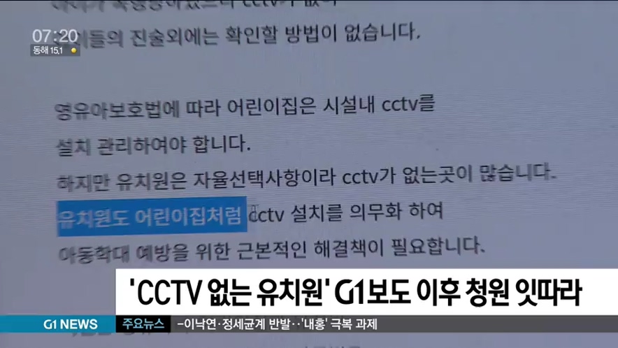 'CCTV 없는 유치원' G1 보도 이후 청원 잇따라