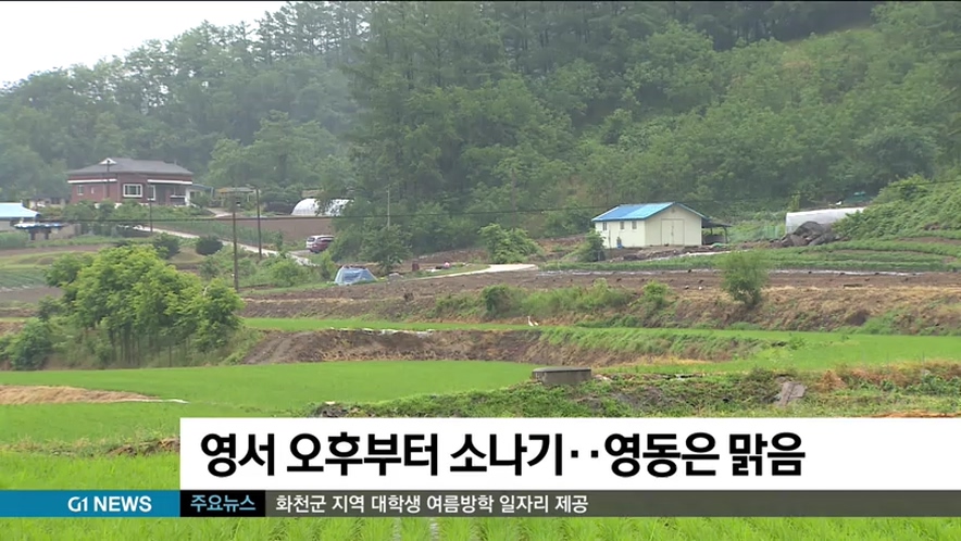 강원도는 오늘 영서지역을 중심으로 오후부터 밤사이 소나기가 내리는 곳이 있겠습니다.