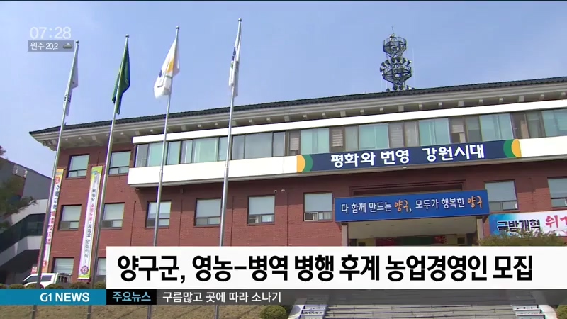 양구군, 영농-병역 병행 후계 농업경영인 모집