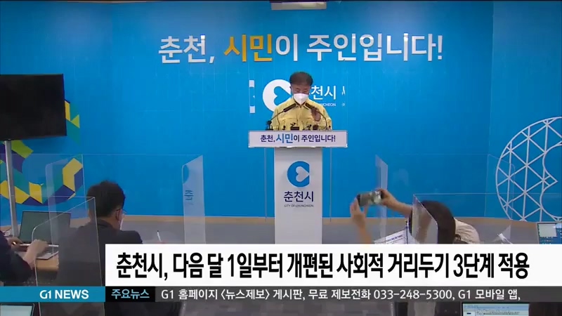 춘천시는 다음달 1일부터 14일까지 2주간 개편된 코로나19 대응 사회적 거리두기 3단계를 적용한다고 밝혔습니다.