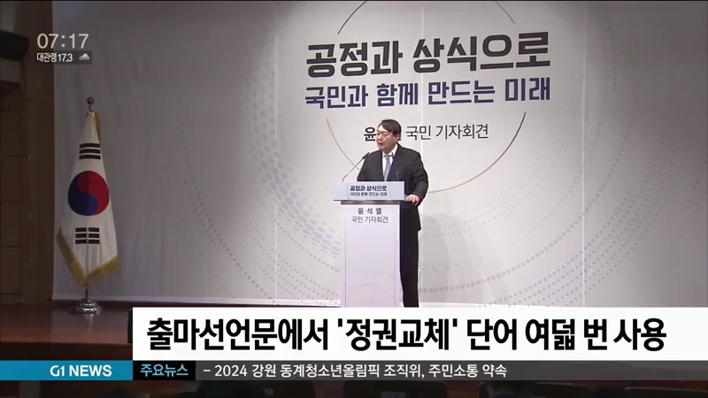 출마의 변의 '키워드'는 예상대로, 공정과 상식, 자유민주주의와 법치였습니다.
