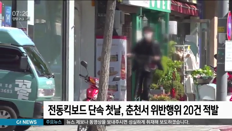 개인형 이동장치, 전동킥보드의 개정 도로교통법 계도기간이 종료된 가운데, 단속 첫날인 어제(1일) 춘천에서만 교통법규 위반행위가 20건 적발됐습니다.
