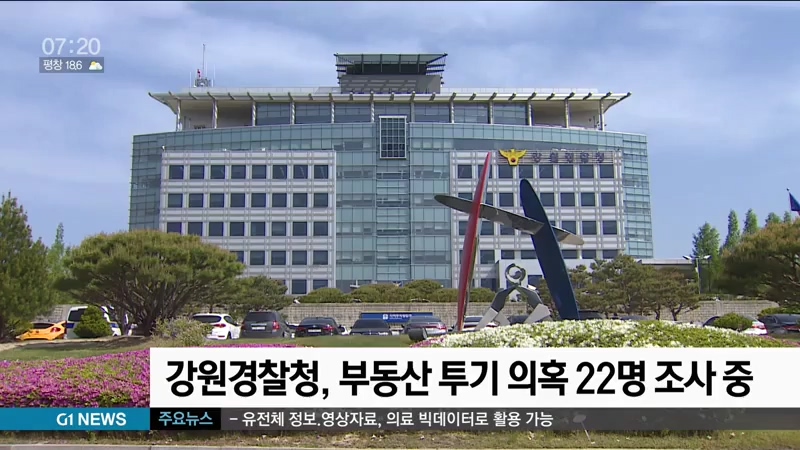강원경찰청은 도내에서 부동산 투기 의혹을 받는 공무원과 공공기관 직원 등 22명을 조사하고 있다고 밝혔습니다.