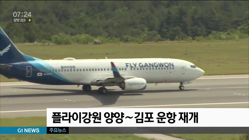 양양국제공항을 기반으로 하는 플라이강원이 양양~김포 노선 운항을 재개했습니다.