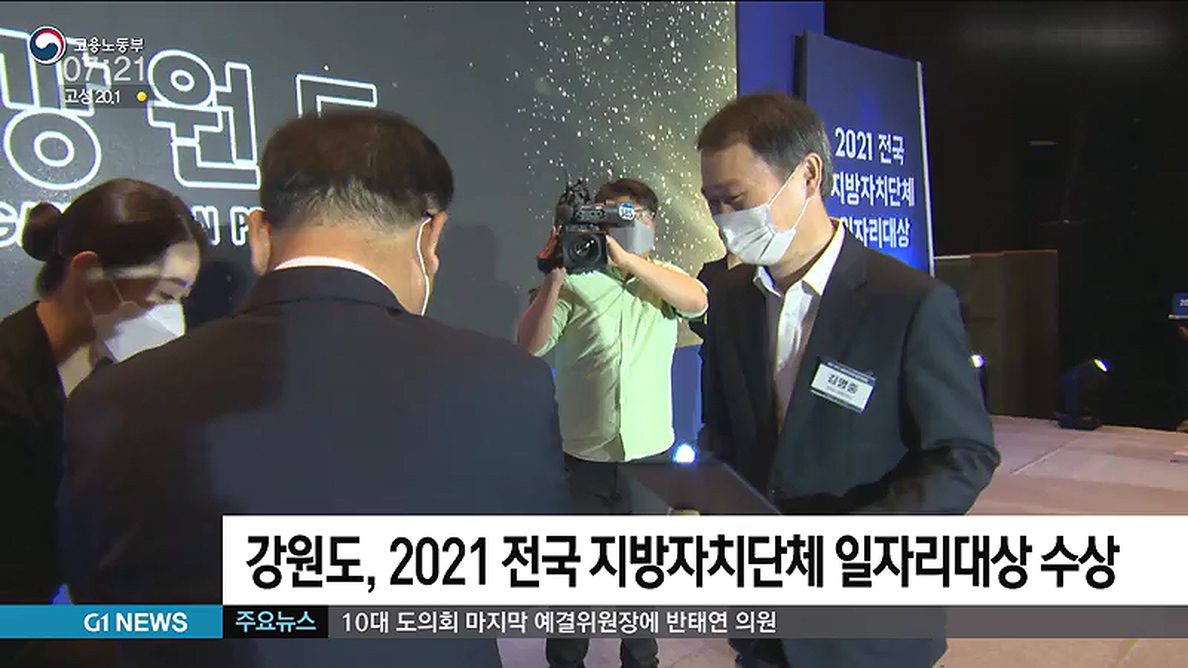 고용노동부가 주관하는 '2021 전국 지방자치단체 일자리대상'에서 강원도가 대상을 수상했습니다.