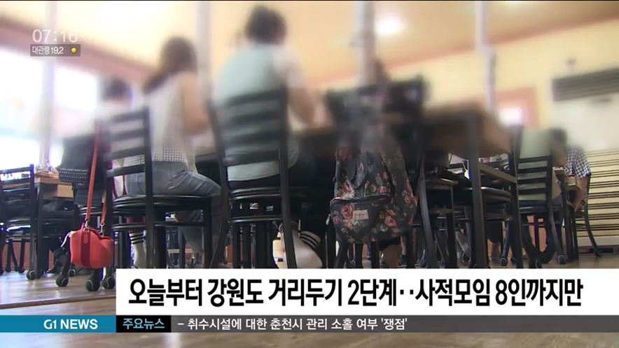 오늘부터 강원도 거리두기2단계..사적모임 8인까지만