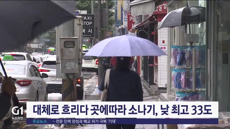 대체로 흐리다 곳에따라 소나기, 낮 최고 33도