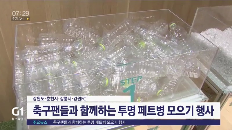 강원도와 춘천시, 강릉시, 강원FC는 축구팬들과 함께하는 자원순환 캠페인, '투명 페트병 모으기' 행사를 엽니다.
