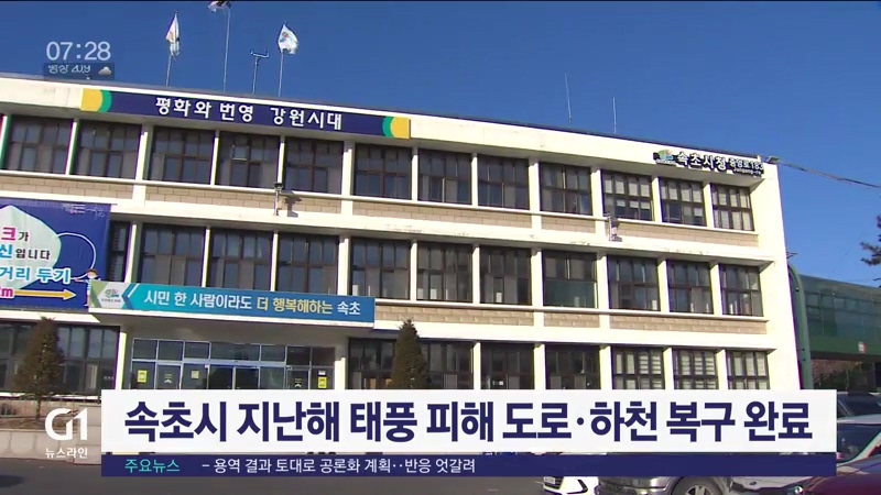 속초시는 지난해 9호 태풍 마이삭과 10호 태풍 하이선으로 피해를 입은 도로와 하천 복구사업을 완료했다고 밝혔습니다.