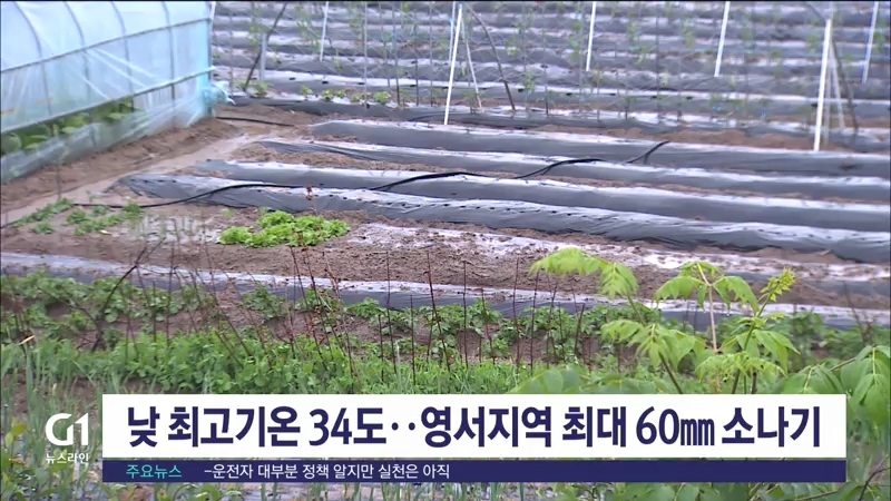 낮 최고기온 34도..영서지역 최대 60㎜ 소나기