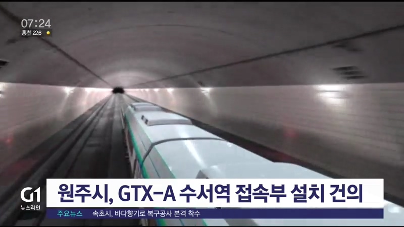 원주시는 수도권 광역급행 철도인 GTX-A 노선을 경강선에 연결하기 위한 수서역 접속부 설치 필요성을 촉구하는 내용의 건의문을 국토교통부에 제출했습니다.