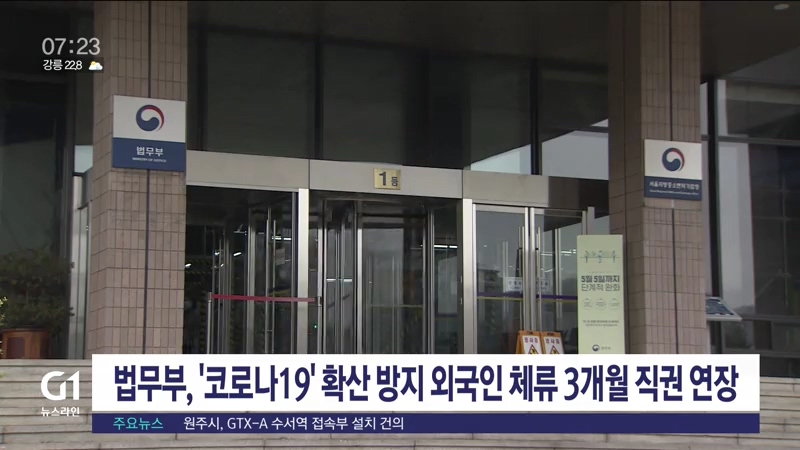 법무부는 '코로나19' 지역사회 확산 방지를 위해, 오는 9월 말까지 체류 기간이 만료되는 외국인 약 9만 여명의 체류기간을 3개월간 직권 연장한다고 밝혔습니다.