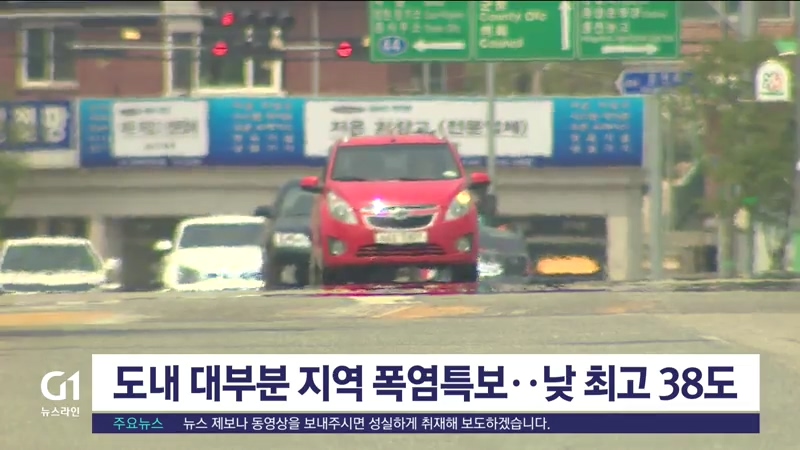 도내 대부분 지역 폭염특보..낮 최고 38도