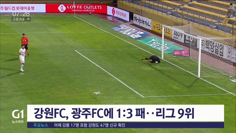강원FC는 어제 오후 광주 축구전용경기장에서 열린 '하나원큐 K리그1 2021' 20라운드 원정 경기에서 광주에게 3골을 내주면서 1대 3으로 패했습니다.