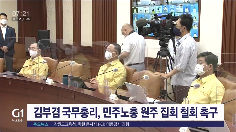 민주노총이 오는 23일과 30일 원주에서 대규모 집회를 개최하는 것과 관련해, 김부겸 국무총리가 집회 철회를 촉구했습니다.