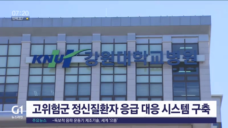 강원도는 이달부터 '강원도형 정신응급대응 시스템'을 구축하고, 24시간 정신의료기관 응급 위기 대응 응급용 2개 병상을 운영한다고 밝혔습니다.