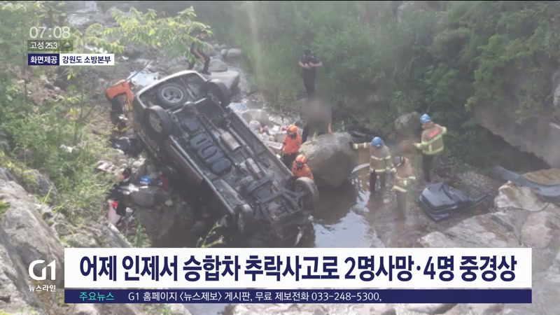 어제 인제서 승합차 추락사고로 2명사망·4명 중경상