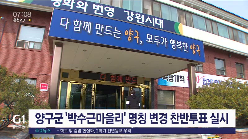 양구군은 정림1리 마을 명칭 변경을 위한 주민찬반투표를 오늘(5일) 오전 7시부터 12시간 동안 마을회관과 인근 아파트 주차장에서 진행할 예정입니다.