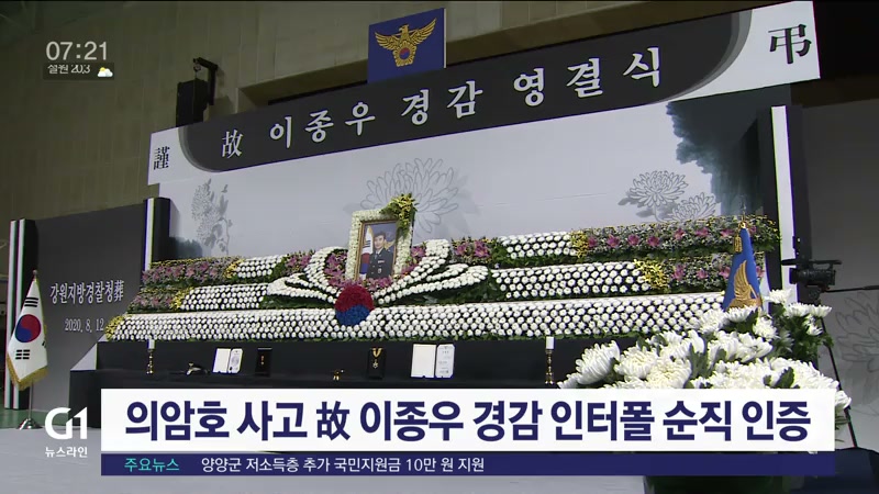 지난해 8월, 8명의 사상자를 낸 춘천 의암호 선박 사고로 순직한 故 이종우 경감이 한국 경찰로는 처음으로 인터폴로부터 순직 인증을 받았습니다.