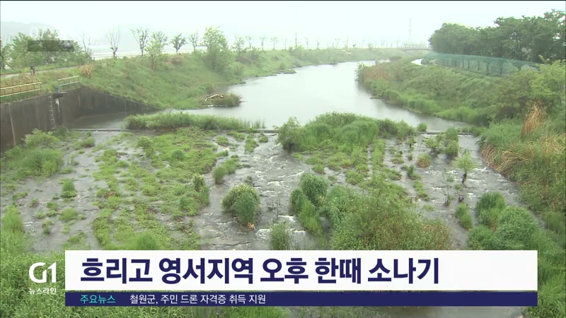 오늘 강원도는 대체로 흐린 가운데 오후 한때 영서지역을 중심으로 소나기가 내리는 곳이 있겠습니다.