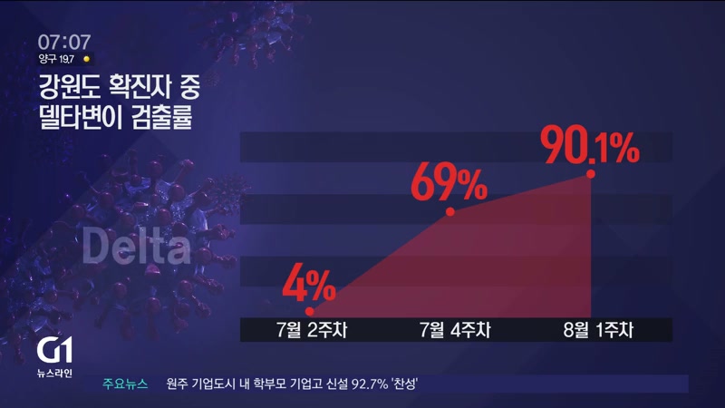 "강원도에서도 매서운 속도로 델타 변이 바이러스가 확산하는 추세입니다."