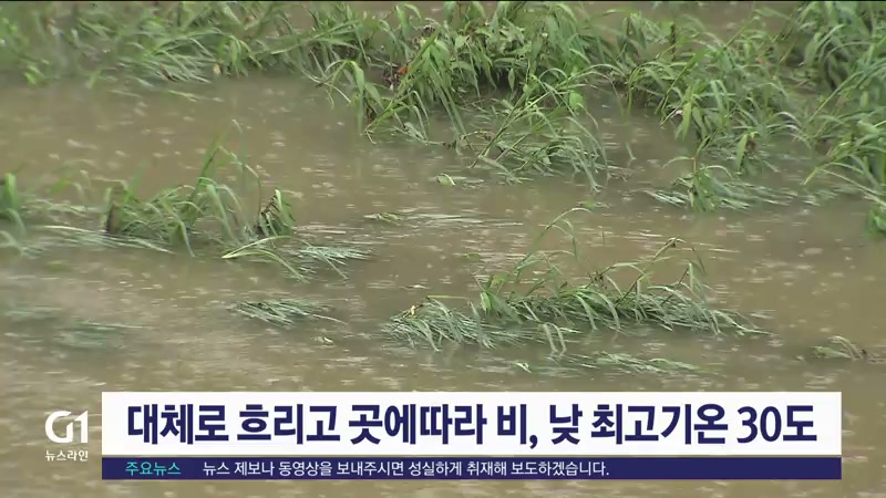 대체로 흐리고 곳에따라 비, 낮 최고기온 30도